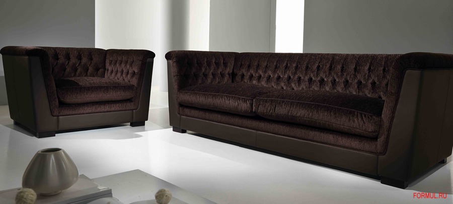 Этот диван является престижной моделью, в основном благодаря стеганным подлокотникам и спинке ручной работы. Наполнение- смесь перьев и полиуретана для идеального комфорта.