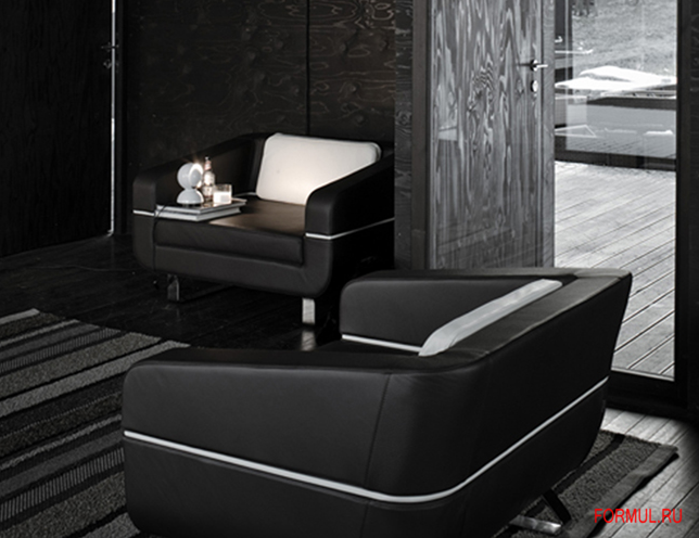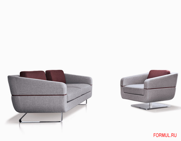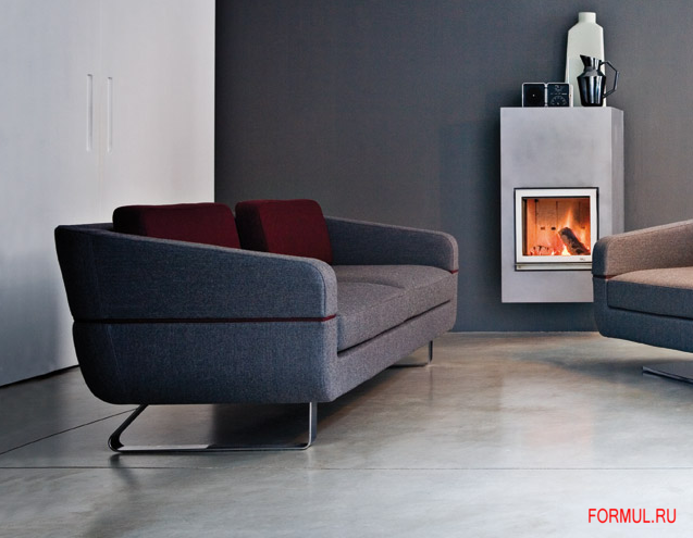 Диван с ярким, выделяющимся дизайном. Специальная вставка между спинкой и сидением визуально разделяет набивку на две части, особенно если диван обтянут контрастным по цвету материалом.
