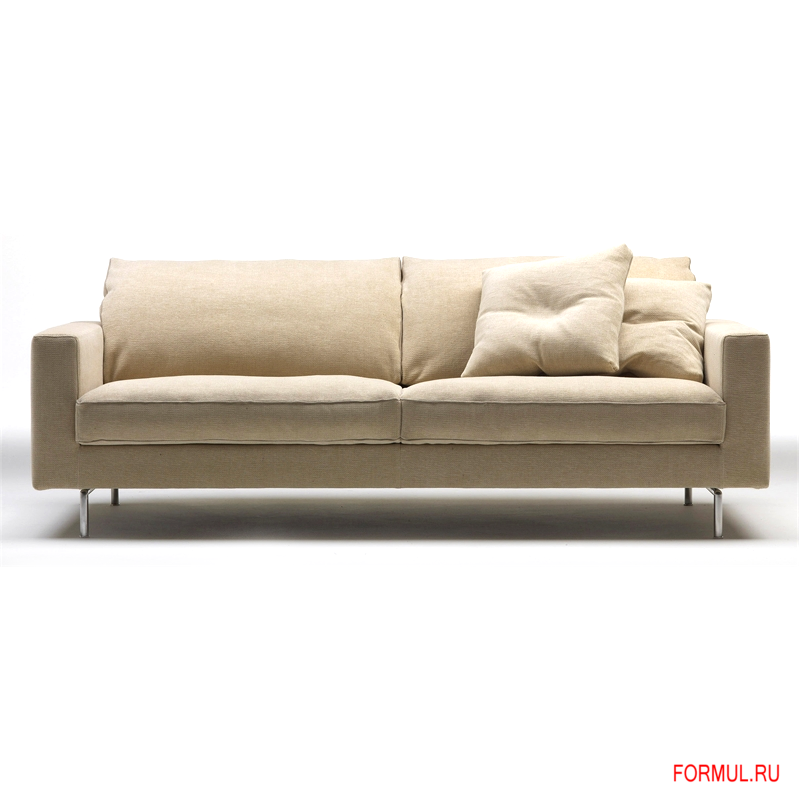 Диван на каркасе из окаршенных стальных трубк и столярной плиты на основе ели в шпоне тополя. Ножки из хромированной стали. Упругость сиденью придают эластичные ремни и пружинный блок. Наполнитель — ППУ различной жесткости, акриловое и полиамидное волокно, ППУ “Xtra-pur” (только подушки сиденья), вымытое и стерилизованное гусиное перо (только подушки спинки). В спинку может вставляться валик цилиндрической формы, увеличивающий общую высоту спинки на 13 см. Обивка — ткань (съемная) / кожа. Имеется диван в двух-, трех- и четырехместной версии. Также доступны модульные элементы различных размеров (левосторонние и правостонние модули, длинные сиденья, центральные и угловые элементы).