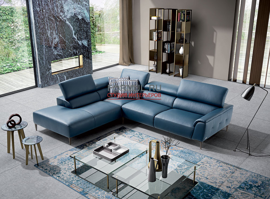Извилистый и элегантный, но особенно удобный благодаря регулируемой спинки, подходящие для каждого положения тела,прекрасно украсит интерьер в синих тонах.