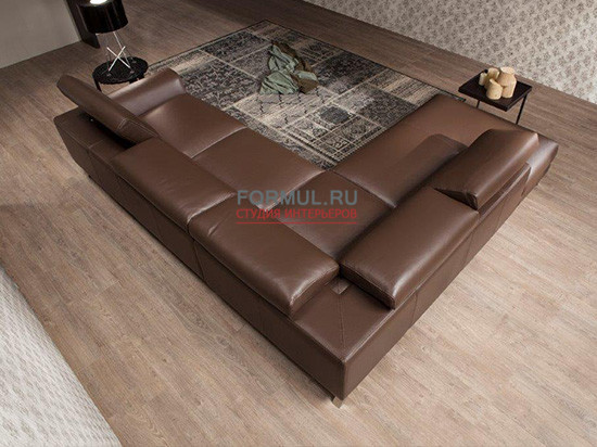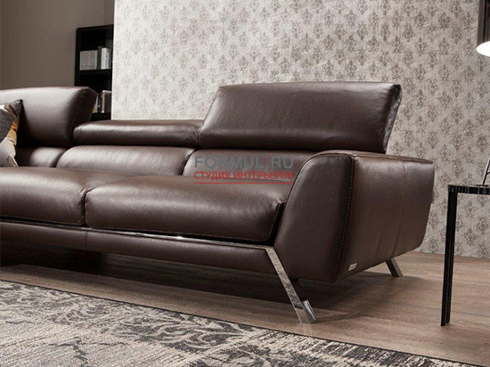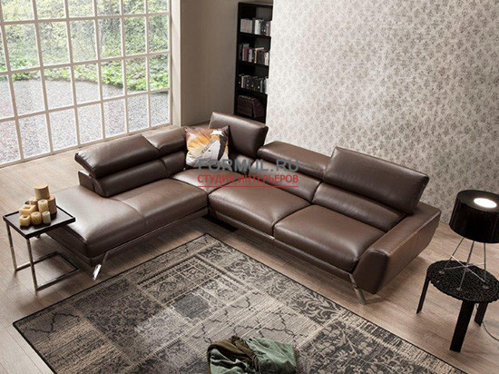 Угловой диван на хромированных ногах длиной 3470 см от фабрики Loiudiced. Каркас дивана выполнен из дерева твердых пород. Диван обит натуральной телячьей кожей, для большего комфорта верхняя часть спинки дивана опускается и поднимается. Очень стильный диван для современного модного интерьера. Регулируемые подголовники позволяют удобно расположиться на этом диване