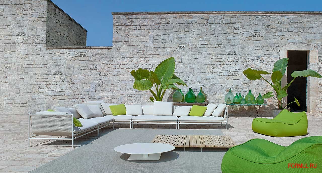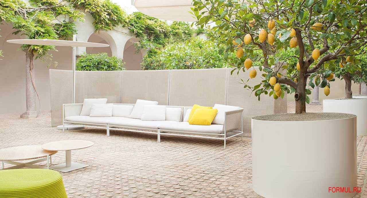 Модульный диван Canvas фабрики Paola Lenti. Дизайн: Francesco Rota. Корпус выполнен из нержавеющей стали, покрыт краской цвета слоновой кости или графита. Сиденья и спинки съемные, в обивке, доступной в различных цветах, специально обработаны защитой против плесени и средством для борьбы с бактериями. Для большего комфорта, возможно дополнительно приобрести подушку. Так же, можно приобрести защитные зимние покрытия
