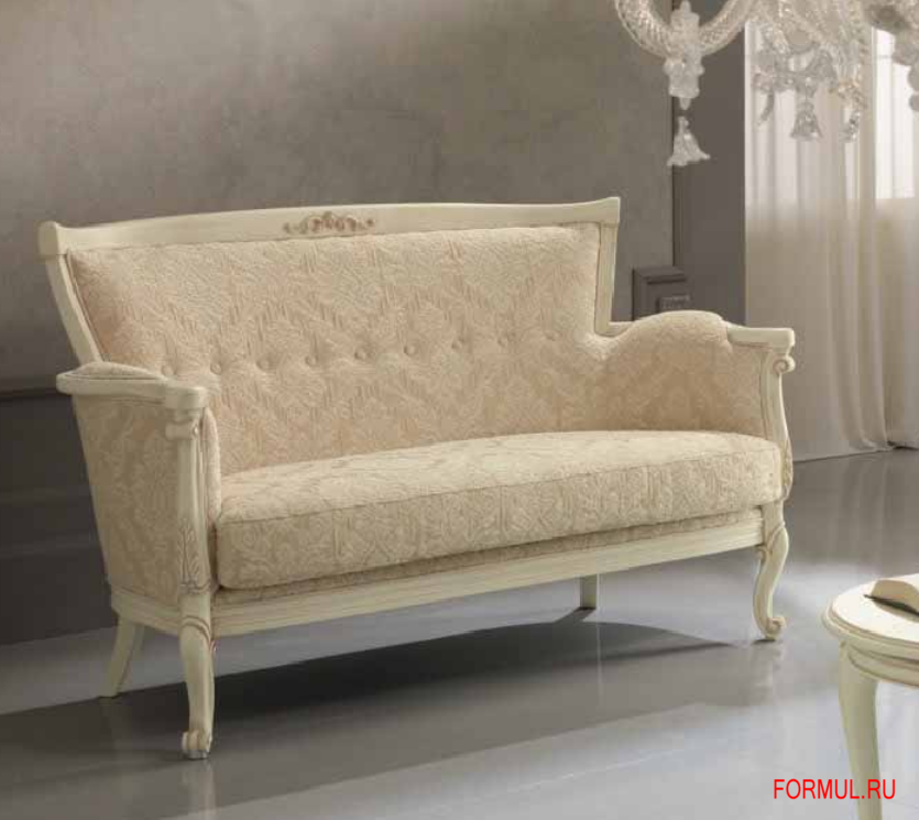 Двухместный диван Augusta от итальянского производителя Piermaria. Каркас выполнен из массива бука, обивка - текстиль из ассортимента кампании. Сидение съёмное. Модель опирается на резные ножки-кабриоли. Прекрасный выбор для интерьера в классическом стиле. Цветовая гамма: натуральный цвет дерева, слоновая кость, коричневый.