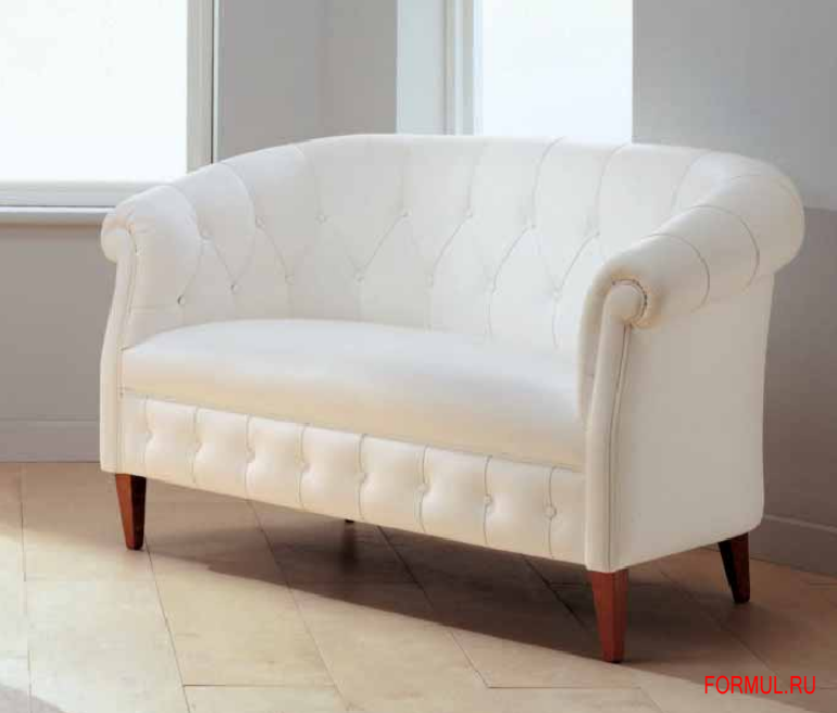Двухместный диван. Обит в технике капитоне. Наполнение полиуретан. Возможны другие варианты отделки и обивки, в том числе в ткани клиента.