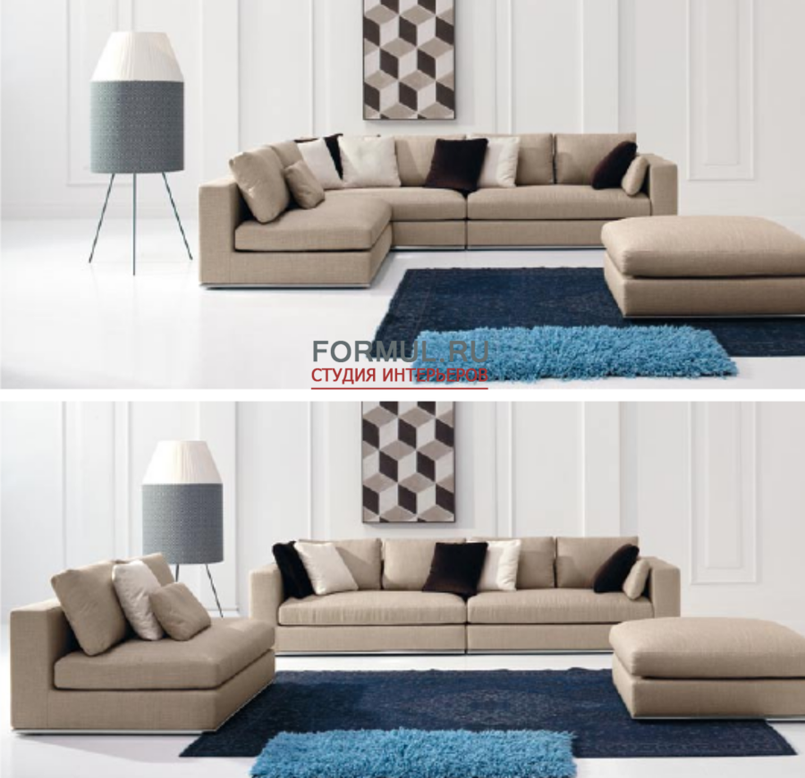 Пуф позволяет создавать различные конфигурации дивана. Наполнитель подушек изготовлен из полиуретана, каркас из массива ели. Диван выполнен в современном стиле.