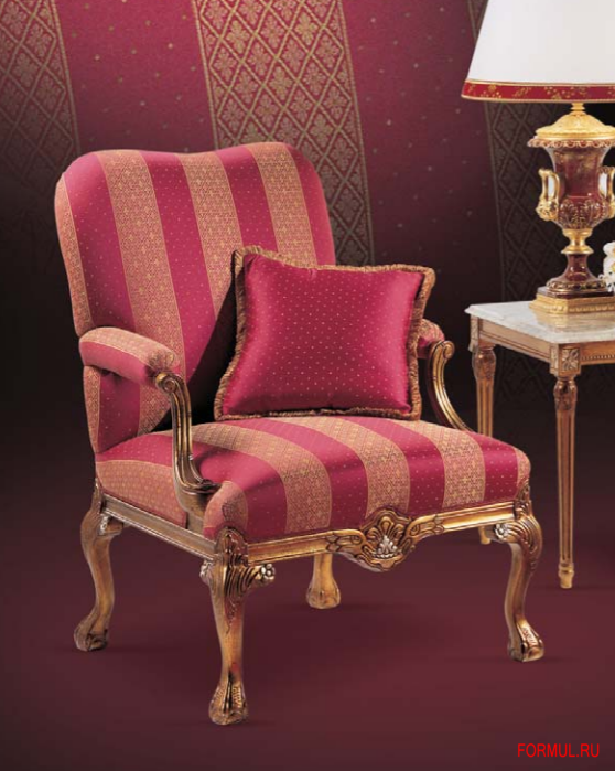 Прекрасное кресло, имеющее потрясающий резной каркас в классическом стиле.