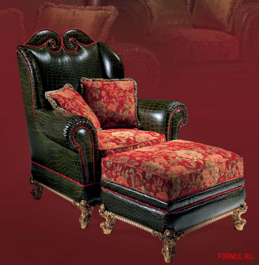 Кресло и пуф выполненные в классичкеском стиле, будут прекрасным дополнениему интерьеру.