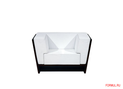 Кресло на деревянной основе, набивка: пенополиуретан, обивка: белая кожа.