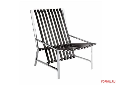 Кресло с каркасом из нержавеющей стали, сидение и спинка обтянуты черными кожаными полосками.