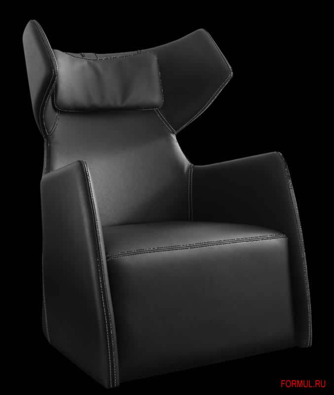 Кресло Snob от итальянской фабрики Gamma выполнено в современном стиле и имеет оригинальную форму. У кресла тонкие подлокотники шириной 5 см. Глубина сиденья 54 см, а высота - 41 см. База выполнена из дерева, подушка сиденья из полиуретана. Сзади кресла украшение в виде пряжки.