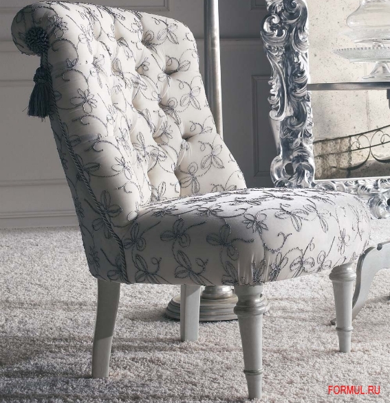 Кресло дополнительно украшено мебельным кантом с пушистой кисточкой на конце.