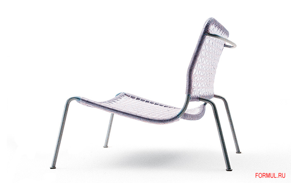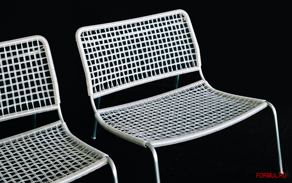 Стул на каркасе из стальных трубок - хромированных / окрашенных порошковым способом. Сиденье и спинка - плетение из сыромятной кожи (натуральная, черного / коричневого цвета); пенькового жгута; прозрачного / цветного ПВХ. Предлагается вариант модели с наполнителем ППУ, акриловым волокном. Возможна текстильная съемная / стационарная фетровая / кожаная обивка. Модель для использования на улице доступна с каркасом из нержавеющей стали с матовой отделкой.