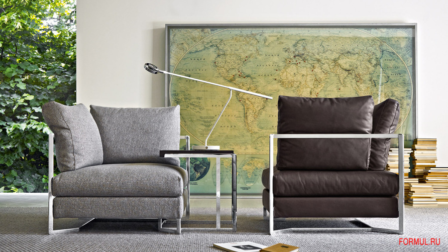 Кресло Large доступно в двух версиях — на стальном каркасе, окрашенном в цвет титана либо с отделкой под блестящий хром.