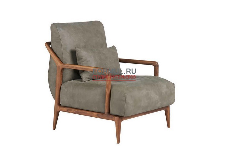 Каркас кресла Indigo 1019 из массива ореха в эффектном стиле арт-деко. В качестве сидения и спинки используются съёмные подушки, наполненные недеформируемым гипоаллергенным полиуретаном, который славится на весь мир удивительным балансом между мягкостью и упругостью. Чехлы к подушкам выполняются либо в коже, либо в однотонной ткани.