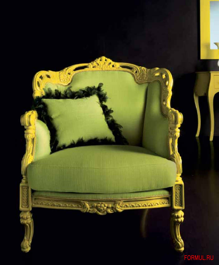 Ярким акцентом гостиной может стать замечательное кресло Glem знаменитой фабрики Piermaria из Италии. Модель выполнена по безупречным канонам классического стиля и входит в коллекцию мягкой мебели для дома Graffiti. Каркас кресла – высококачественный массив с резьбой ручной работы. Яркий материал обивки и покрытие каркаса выбрано из палитры, представленной фабрикой. Вы можете подобрать свое собственное сочетание, которое подойдет под цветовую гамму именно Вашего интерьера. Высота сиденья - 44 см. Декоративные подушки так же изготавливаются фабрикой Piermaria.