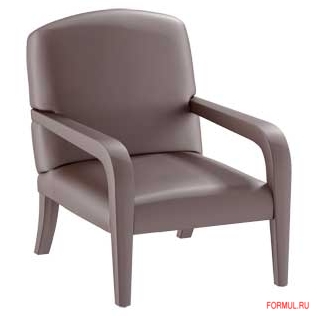 Кресло на "скрытом" деревянном каркасе. Модель полностью обтянута текстильной обивкой. Может быть дополнена декоративной шелковой подушкой.