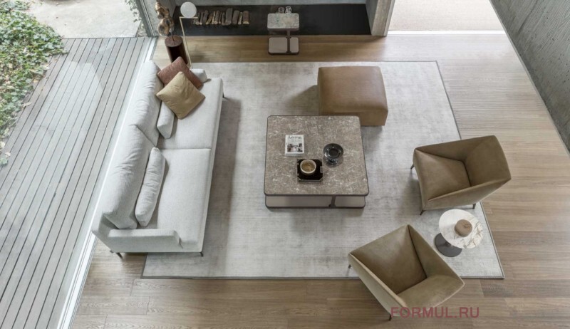 В основе конструкции — каркас из отборной ели с эластичными каучуковыми ремнями, обеспечивающий идеальную поддержку и долговечность. Многослойное наполнение сидений из пенополиуретана разной плотности создаёт анатомически правильный комфорт, а спинки с подушками из гусиного пуха и полиуретановыми вставками дарят непревзойдённое ощущение уюта. Широкий выбор обивочных материалов включает роскошные ткани, благородный бархат, элитную кожу и современные экологичные варианты. Литые алюминиевые ножки с совершенной отделкой завершают образ, подчёркивая статусность модели.