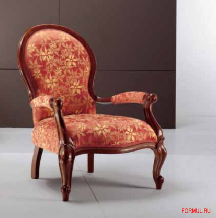 Кресло Louise на каркасе из массива бука. Опирается на резные ножки-кабриоли. Видимые части каркаса окрашены в различные цвета из коллекции фабрики. Обивка - текстиль.