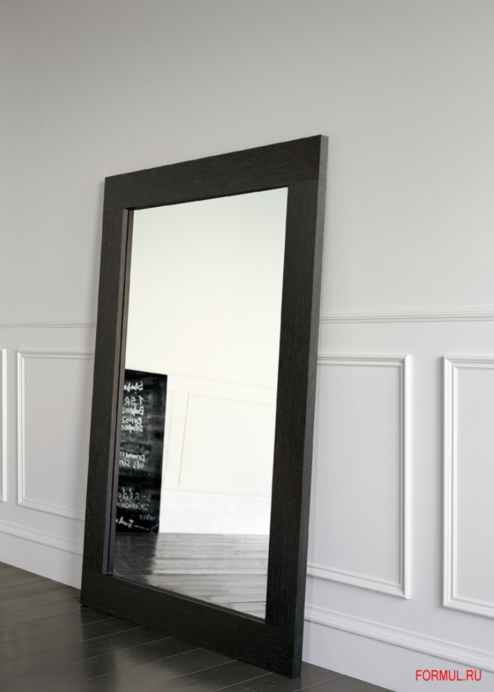Зеркало в черной раме из МДФ, облицованной дубом.