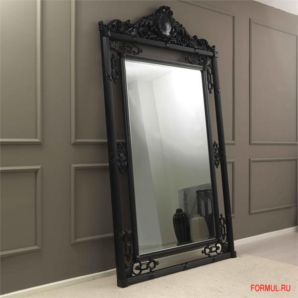Напольное зеркало в деревянной раме, украшенной резьбой ручной работы.