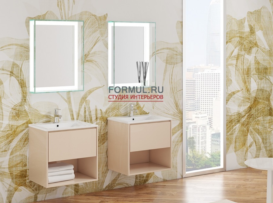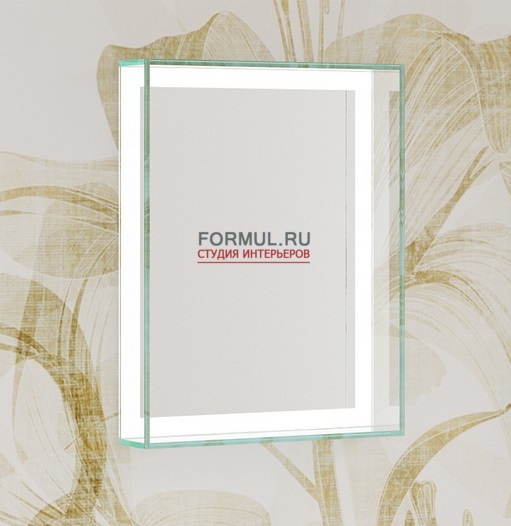 В корпусе из закаленного стекла, продолжение которого выполняет роль полок. Толщина стекла 10 мм. Пескоструй по периметру зеркала. Несколько вариантов выключателя, уточняем при заказе. «сенсор», «ИК» или прямое подключение к сети.