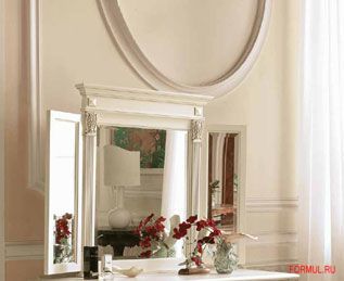 Изысканное зеркало с закругленным карнизом из серии Puccini, рама выполнена полностью из дерева, в традиционном классическом стиле. (цвет белый)