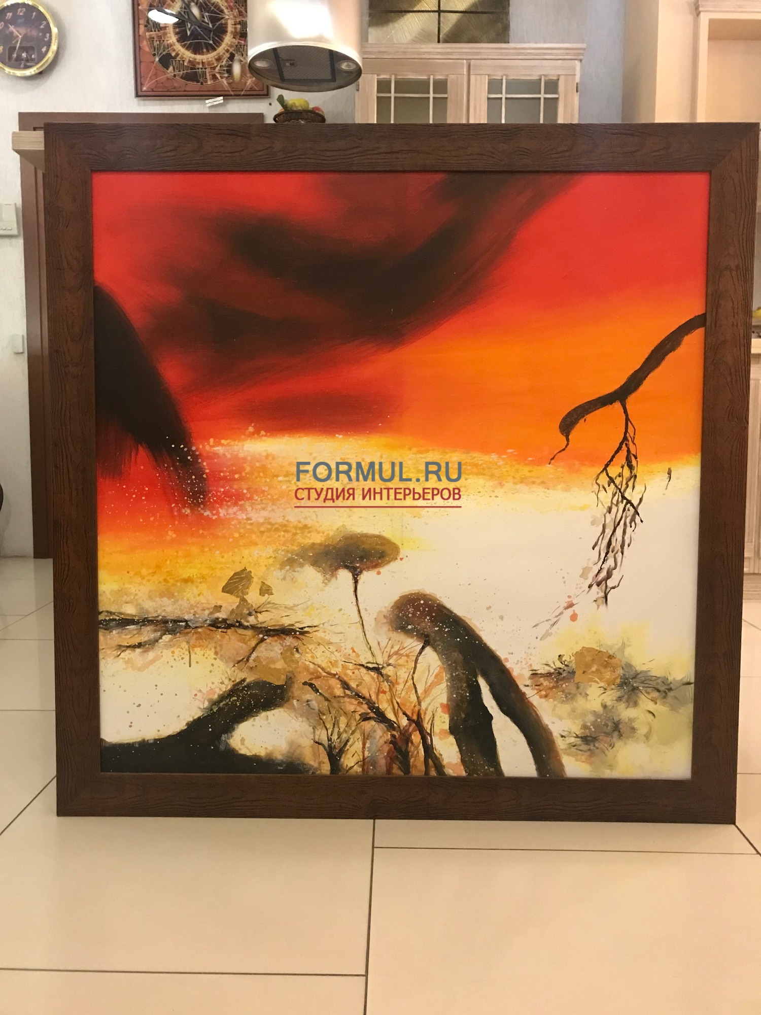 Рама - темный дуб, картина в красных, оранжевых, жёлтых и коричневых тонах