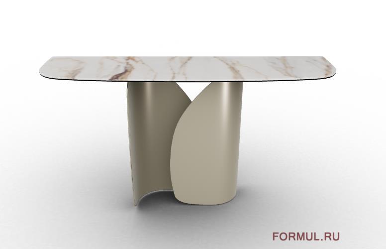 Отделка: нога и рама - металл жемчужный бежевый (P46M MATT PEARL), столешница и вставки керамика (P31C CALACATTA PAONAZZO MARBLE)
