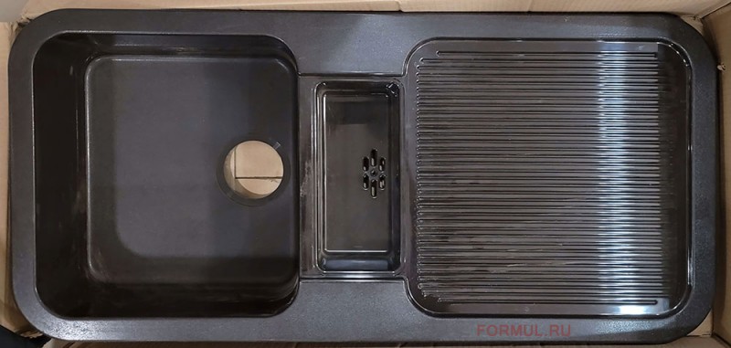 Эргономичный дизайн и темный шоколадный цвет отделки делают мойку стильной и гармонично вписывающейся в интерьер любой кухни.