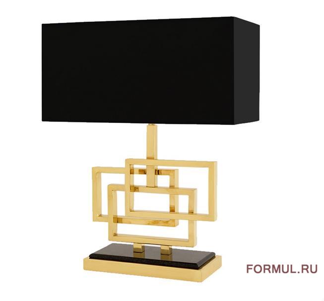 Настольная лампа в стиле арт-деко Windolf. Благодаря своему графическому дизайну эта лампа добавит современности и оригинальности в ваш интерьер. Светильник состоит из изящной рамы с золотой отделкой и основания из черного гранита. Поставляется с черным абажуром. Товар упакован в две коробки.