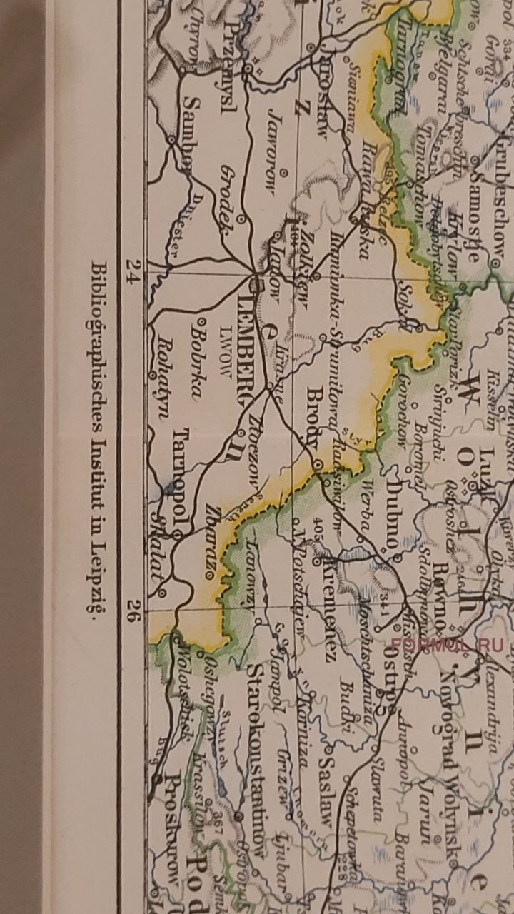 Карта территорий современной западной России, Беларуси, Украины и Польши. Немецкий атлас начала ХХ века. Обозначения на немецком языке.
