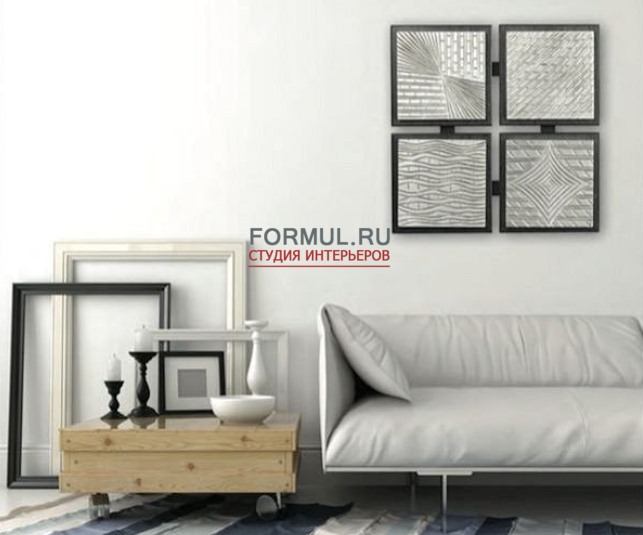 Панно «Графика 1» отличается оригинальным решением: квадрат, состоящий из четырёх соединённых между собой квадратов. Такое графическое решение смотрится необычно и элегантно.