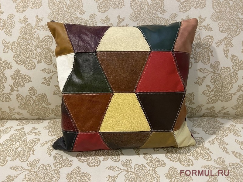 Квадратной и прямоугольной формы подушки действительно сшиты из множества разноцветных лоскутов.