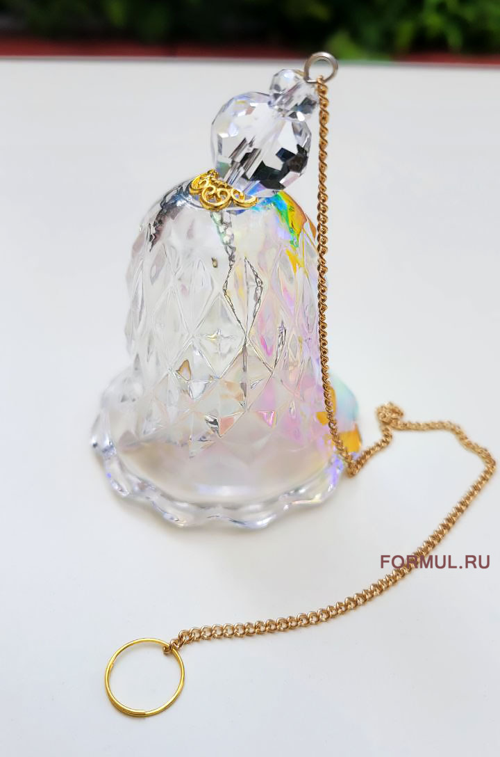 Стеклянный колокольчик переливается всеми цветами радуги.