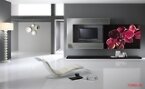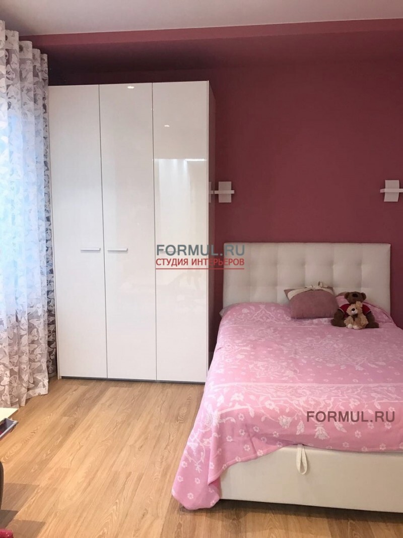 Оцените чистоту линий: фасады без лишнего декора подчеркнуты только белыми ручками. Удобные и минималистичные, а белый глянец сделает комнату светлее и визуально просторнее.