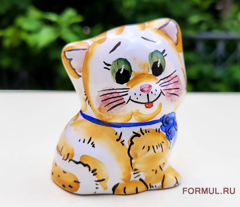 Статуэтка Авторская работа Котенок с синим бантом Распродажа