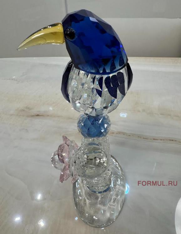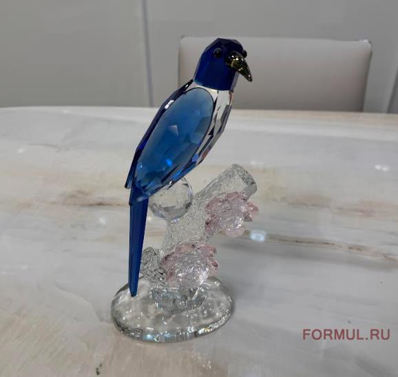 Эта стеклянная фигурка изображает изящную птицу с ярким синим оперением. Ее тело выполнено из прозрачного и синего стекла, что создает красивую игру света.