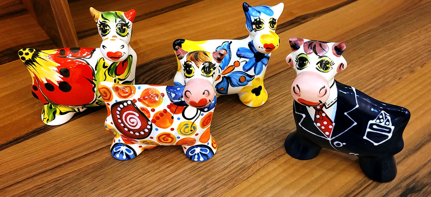 Лучезарное стадо керамических коров, расписанных в студии известного художника Турова.