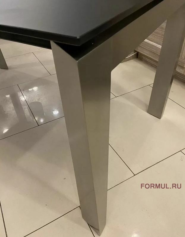 Столешница - черное матовое стекло, ножки и рама - сатинированная сталь