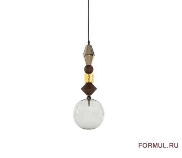 плафон - тонированное стекло с дымчатым эффектом Sfera in vetro fum trasparente, декоративные детали - массив американского ореха Noce canaletto, элементы золота Oro, стекло ambra Vetro ambra