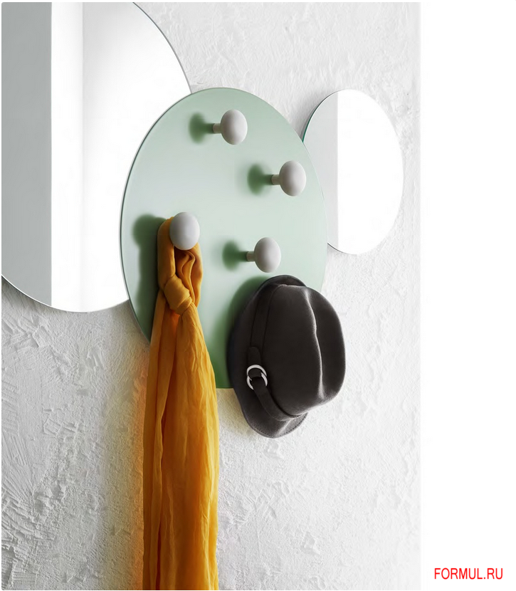 Bubble Plus от итальянского бренда Flai – это оригинальная система, состоящая из нескольких зеркал и круглой вешалки. Зеркала разных размеров компонуются с круглым модулем из металла, оснащенным деревянными держателями для одежды или аксессуаров.