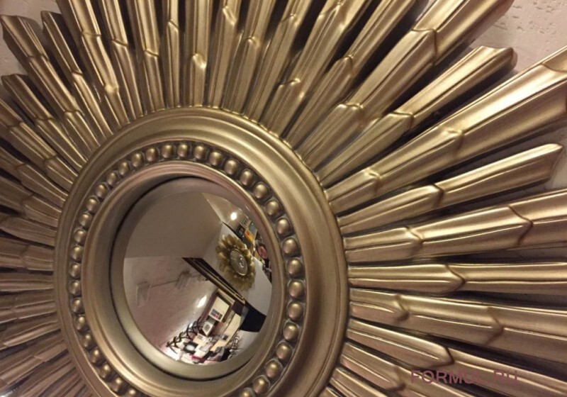 Стильное зеркало со стильной рамой в форме солнца, окрашено в цвет - античное серебро.