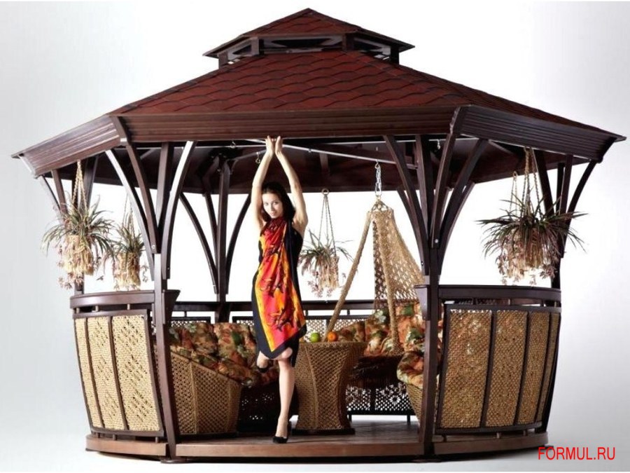 Причем, мебель для беседки и гамак Вы можете также приобрести в нашем магазине, подобрав соответствующую по стилю.