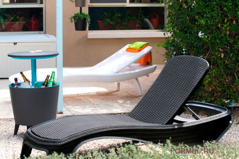 Элегантный лежак благодаря широкой цветовой гамме, качественному пластику, модной, напоминающей ротанг фактуре поверхности, придется по вкусу даже самым требовательным пользователям.