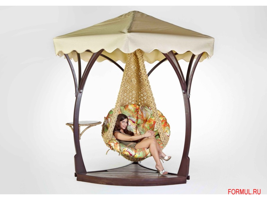Крыша изготавливается из маркизной водонепроницаемой, немаркой ткани, пропитанной TEFLON. Держится крыша на деревянных изящных опорах.