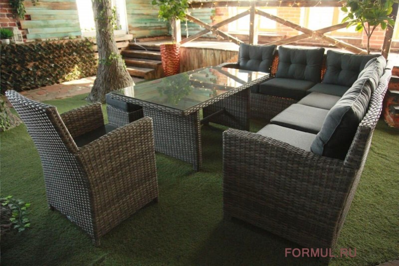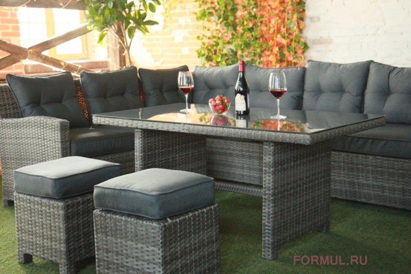 Комплект выполнен из искусственного ротанга на алюминиевом каркасе. Алюминиевый каркас, в отличие от стального, не подвержен коррозии, и прослужит много лет.
