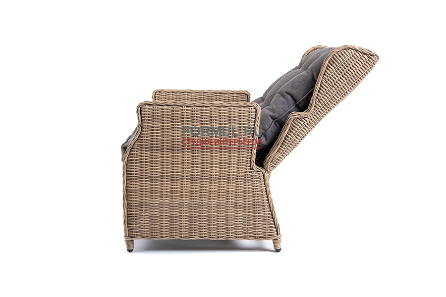 Раскладное кресло "Форио" выполнено из круглого искусственного ротанга соломенного оттенка.
