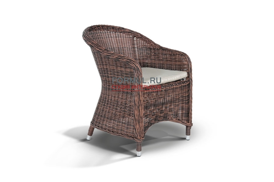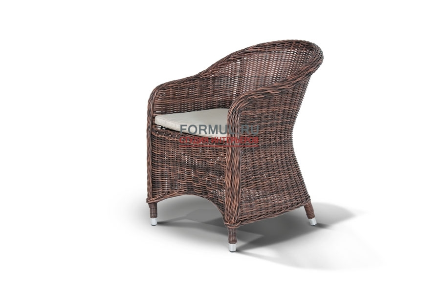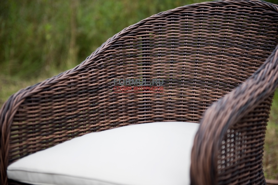 "Равенна" плетеное кресло , стул в комплекте с подушками. Алюминиевый каркас, круглый искусственный ротанг. Ручное плетение темно-коричневого цвета с темно-серыми подушками.