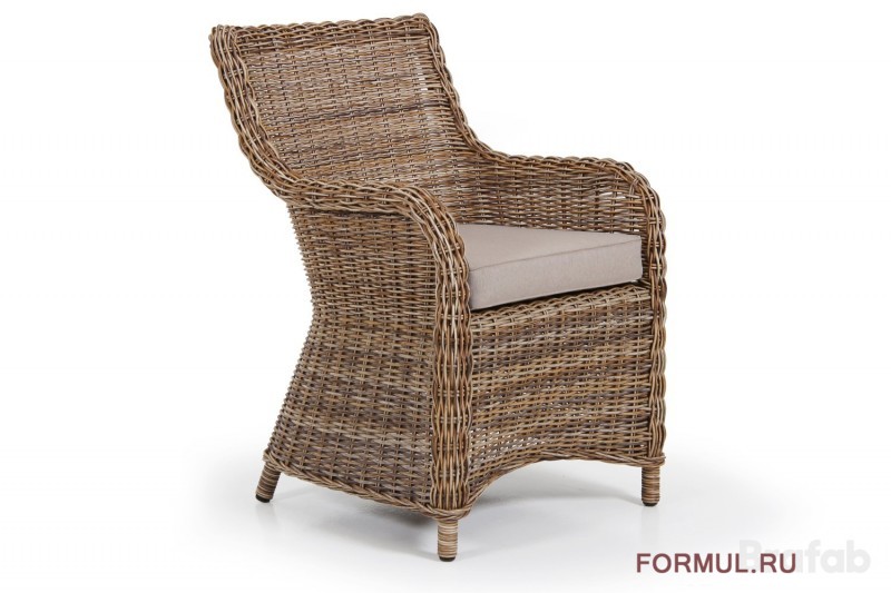Обеденное кресло Catherine поставляется с бежевой подушкой, плетение выполнено из 5-мм ротанга коричневого цвета, каркас кресла алюминиевый.