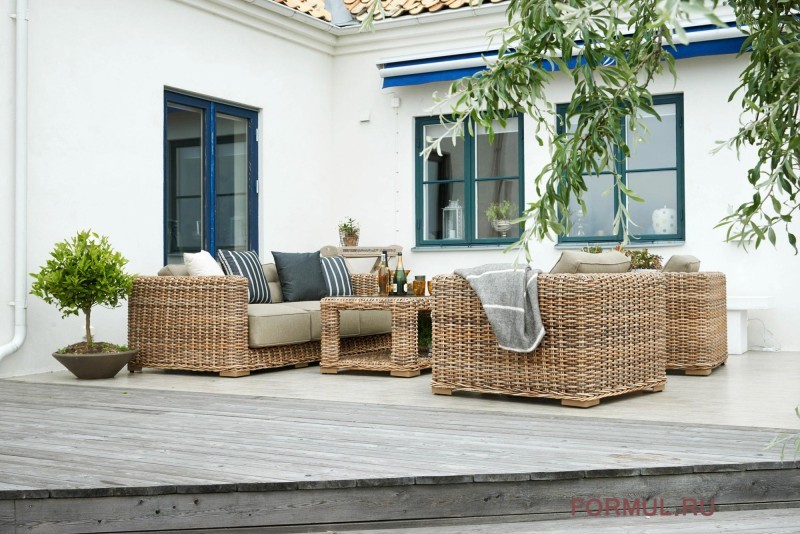 Кресло Eddo выполнено из искусственного ротанга, который полностью имитирует натуральное плетение. Подушки включены в стоимость кресла.